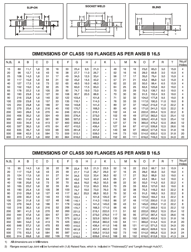 | ASME/ANSI B 16.5 | Slip on Flange, Welding Neck Flange, High Hub Blind Flange, Blind Flange,Lap Joint Flange, Socket Weld Flange, Ring Type Joint Flange, Threaded Flange |